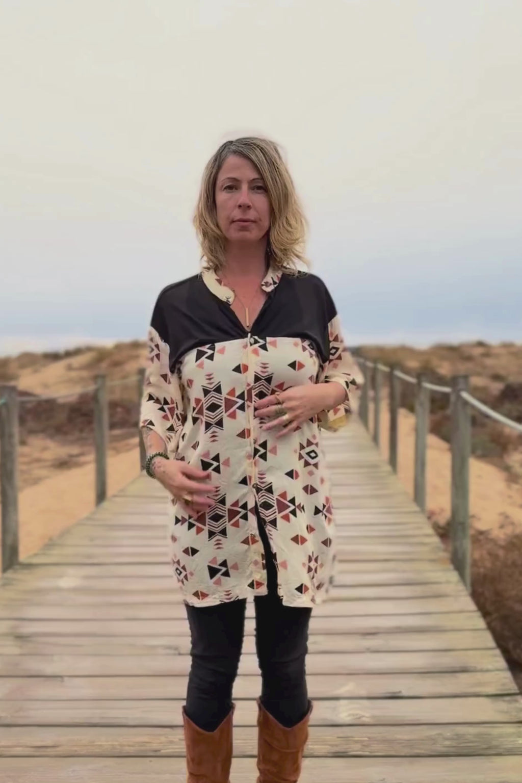 Button tunic dress --> Triangle print